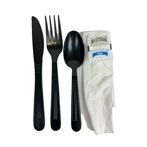 Original price $44.32 - Original price $44.32Original price$44.32$44.32 - $44.32Current price $44.32Six Piece Meal Kit - include Heavy Weight Black Fork, Knife, and Teaspoon, Napkin, Salt and Pepper Packets Case of 250
