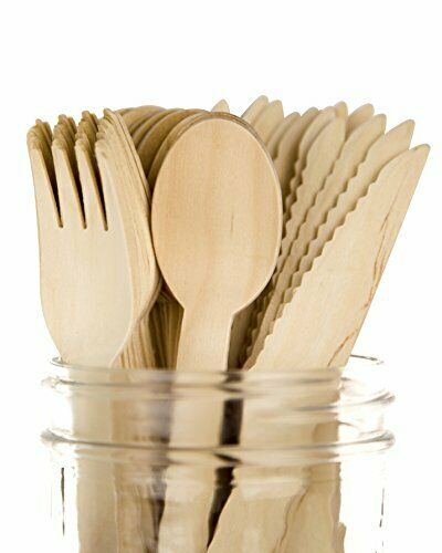 thatpaperstorePerfect Disposable Wooden cutlery combo pack. 100% All- Natural Wooden Compostable Forks Spoons Knife 6" Length ( pack of 150)