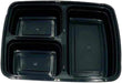 3-Compartment Food Containers with Clear Lids - Rectangular, 1.5“ depth, Black Microwavable Disposable Freezer - Safe BPA-Free Plastic Meal Storage, Combo Pack of 150 Sets - 33oz